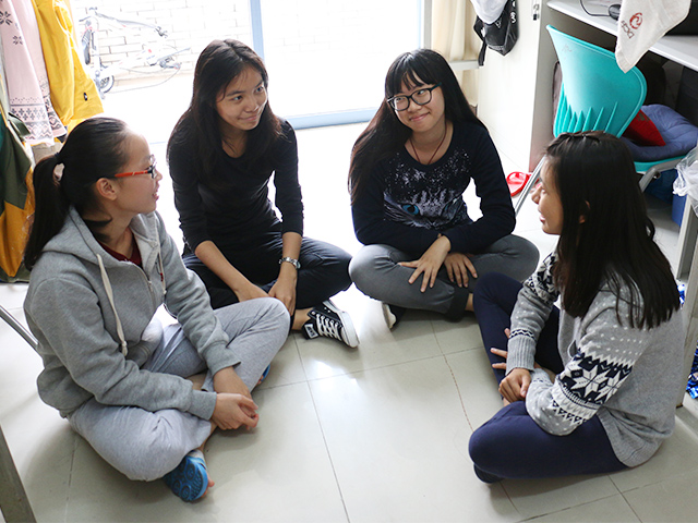 谈心中,各位同学分别进行自我检讨并虚心听取其他舍友的意见和建议,同学们都畅所欲言说出自己的心里话,化解开了心中积压已久的矛盾并达成友好约定。