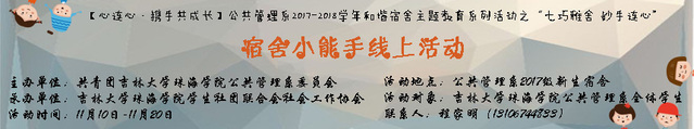公共管理系 和谐宿舍主题教育系列活动“宿舍小能手线上活动” 活动时间:11月10日-11月20日