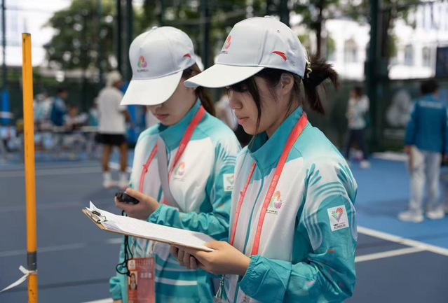 赛场上,“小海豚”志愿者化身专业“守护者”,在竞赛辅助、应急保障、新闻宣传等关键环节发挥重要作用,成为赛事体系中不可或缺的支持力量。“能够亲身参与全国最高级别的体育盛会,我们感到无比自豪”,一位在竞赛组织处服务的志愿者分享,“虽然服务工作辛苦,但看到比赛顺利进行,运动员们能专注于竞技,我们也能体会到浓烈的体育赛事氛围,就觉得一切付出都是值得的。”