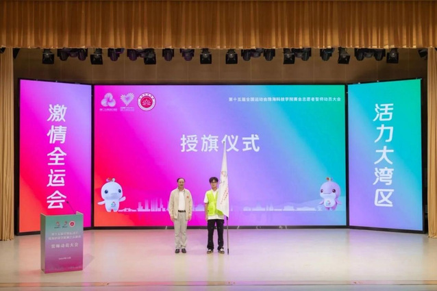 作为志愿者输送重要单位,学校党委高度重视此次志愿服务工作,专门成立志愿者工作双组长领导小组,由学校党委书记、理事长廖立国,党委副书记、校长刘鸣亲自挂帅,并在出征仪式上为志愿者团队庄严授旗,作出征动员。赛事期间,党委委员、纪委书记、副校长黄学寿亲临现场走访慰问,与志愿者们亲切交流,详细了解服务情况与感受,并对大家展现出的专业素养和奉献精神给予了高度肯定。
